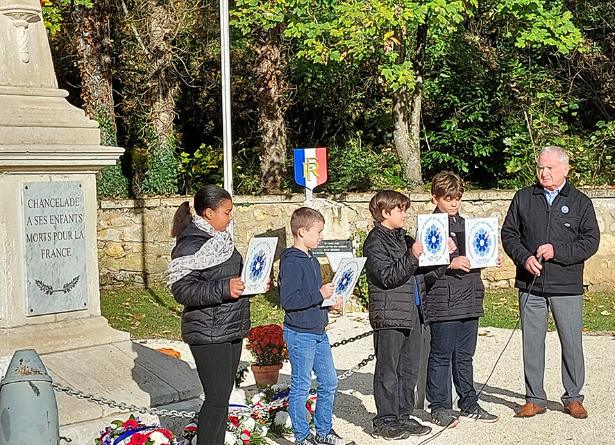 La cérémonie s’est poursuivie avec la célébration du centenaire du Bleuet de France, dont une plaque a été inaugurée près du monument aux morts. Elle sera complétée par des plaques similaires à l’Hôtel de Ville, à l’école élémentaire, au complexe sportif et au centre culturel. Daniel Lagoutte, adjoint au maire, a retracé l’histoire de cette institution avant que tous ne se retrouvent pour le verre de l’amitié.